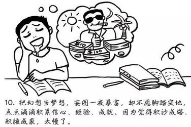 把幻想当梦想,妄图一夜暴富,却不愿脚踏实地,点点滴滴积累信心、经验、成就,因为觉得积沙成塔、集腋成裘,太慢了。