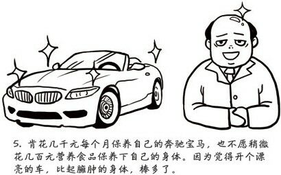 肯花几千元每个月保养自己的奔驰宝马,也不愿稍微花几百元营养品保养下自己的身体,因为觉得开个漂亮的车,比臃肿的身体,棒多了。