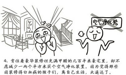 肯住着豪华装修但充满甲醛的几百平米的豪宅里,却不愿减少一两个平米买个空气净化器装置,因为觉得那些因装修得白血病的孩子们离自己的生活,太遥远了。