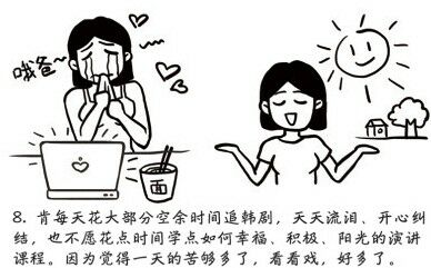 肯每天花大部分空余时间追韩剧,天天流泪,开心纠结,也不愿花点时间学习如何幸福、积极、阳光的演讲课程。因为觉得一天的苦够多了,看看戏,好多了。